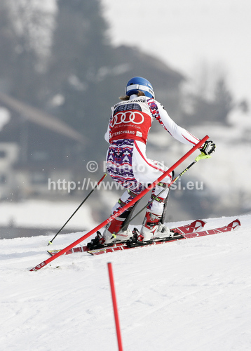 : Marlies Schild of Austria skiing in second run of women slalom race of Audi FIS Alpine skiing World cup in Ofterschwang, Germany. Women slalom race of Audi FIS Alpine skiing World cup was held in Ofterschwang, Germany, on Sunday, 4th of March 2012.