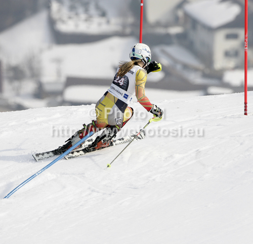 : Erin Mielzynski of Canada skiing in second run of women slalom race of Audi FIS Alpine skiing World cup in Ofterschwang, Germany. Women slalom race of Audi FIS Alpine skiing World cup was held in Ofterschwang, Germany, on Sunday, 4th of March 2012.