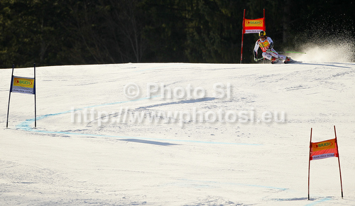 : Marcel Hirscher of Austria skiing in first run of men giant slalom race of Audi FIS Alpine skiing World cup in Kranjska Gora, Slovenia. Men slalom race of Audi FIS Alpine skiing World cup was held in Kranjska Gora, Slovenia, on Saturday, 10th of March 2012.