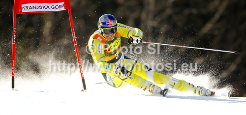 : Aksel Lund Svindal of Norway skiing in first run of men giant slalom race of Audi FIS Alpine skiing World cup in Kranjska Gora, Slovenia. Men slalom race of Audi FIS Alpine skiing World cup was held in Kranjska Gora, Slovenia, on Saturday, 10th of March 2012.