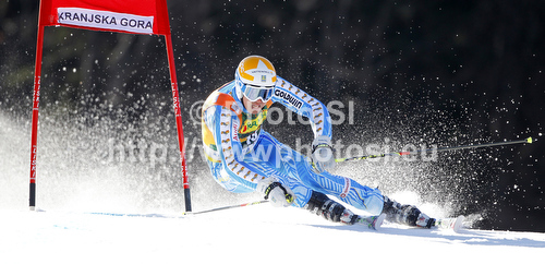 : Andre Myhrer of Sweden skiing in first run of men giant slalom race of Audi FIS Alpine skiing World cup in Kranjska Gora, Slovenia. Men slalom race of Audi FIS Alpine skiing World cup was held in Kranjska Gora, Slovenia, on Saturday, 10th of March 2012.