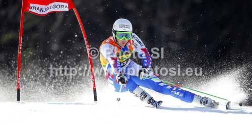 : Steve Missillier of France skiing in first run of men giant slalom race of Audi FIS Alpine skiing World cup in Kranjska Gora, Slovenia. Men slalom race of Audi FIS Alpine skiing World cup was held in Kranjska Gora, Slovenia, on Saturday, 10th of March 2012.