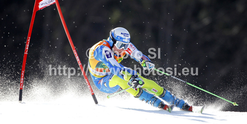 : Matic Skube of Slovenia skiing in first run of men giant slalom race of Audi FIS Alpine skiing World cup in Kranjska Gora, Slovenia. Men slalom race of Audi FIS Alpine skiing World cup was held in Kranjska Gora, Slovenia, on Saturday, 10th of March 2012.