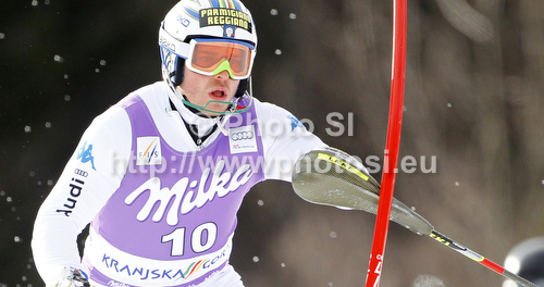 : Giuliano Razzoli of Italy skiing in first run of men slalom race of Audi FIS Alpine skiing World cup in Kranjska Gora, Slovenia. Men slalom race of Audi FIS Alpine skiing World cup was held in Kranjska Gora, Slovenia, on Sunday, 11th of March 2012.