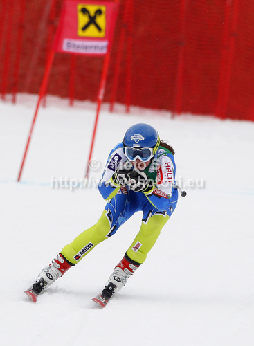 : Marusa Ferk of Slovenia skiing in first training for women downhill race of Audi FIS Alpine skiing World cup finals in Schladming, Austria. Training for women downhill race of Audi FIS Alpine skiing World cup finals was held in Schladming, Austria, on Tuesday, 13th of March 2012.