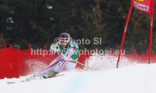 : Elisabeth Goergl of Austria skiing in first training for women downhill race of Audi FIS Alpine skiing World cup finals in Schladming, Austria. Training for women downhill race of Audi FIS Alpine skiing World cup finals was held in Schladming, Austria, on Tuesday, 13th of March 2012.