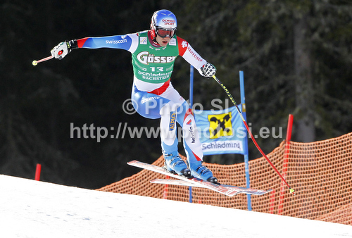 : Fourth placed Didier Defago of Switzerland skiing in men downhill race of Audi FIS Alpine skiing World cup finals in Schladming, Austria. Men downhill race of Audi FIS Alpine skiing World cup finals was held in Schladming, Austria, on Wednesday, 14th of March 2012.