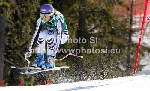 : Maria Hoefl-Riesch of Germany skiing in women downhill race of Audi FIS Alpine skiing World cup finals in Schladming, Austria. Women downhill race of Audi FIS Alpine skiing World cup finals was held in Schladming, Austria, on Wednesday, 14th of March 2012.