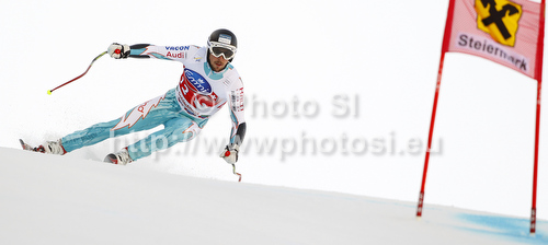 : Andreas Romar of Finland skiing in men super-g race of Audi FIS Alpine skiing World cup finals in Schladming, Austria. Men super-g race of Audi FIS Alpine skiing World cup finals was held in Schladming, Austria, on Thursday, 15th of March 2012.