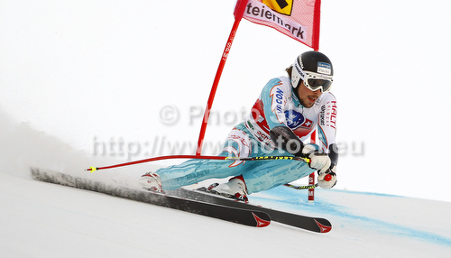 : Andreas Romar of Finland skiing in men super-g race of Audi FIS Alpine skiing World cup finals in Schladming, Austria. Men super-g race of Audi FIS Alpine skiing World cup finals was held in Schladming, Austria, on Thursday, 15th of March 2012.