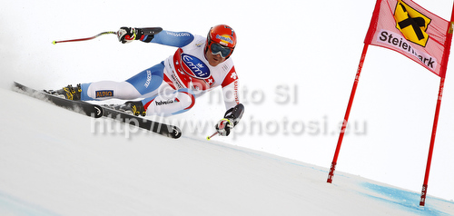 : Second placed in super-g World cup Didier Cuche of Switzerland skiing in men super-g race of Audi FIS Alpine skiing World cup finals in Schladming, Austria. Men super-g race of Audi FIS Alpine skiing World cup finals was held in Schladming, Austria, on Thursday, 15th of March 2012.