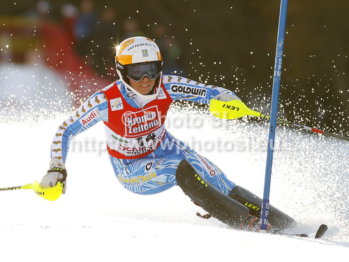 : Frida Hansdotter of Sweden skiing in first run of women slalom race of Audi FIS Alpine skiing World cup finals in Schladming, Austria. Women slalom race of Audi FIS Alpine skiing World cup finals was held in Schladming, Austria, on Saturday, 17th of March 2012.