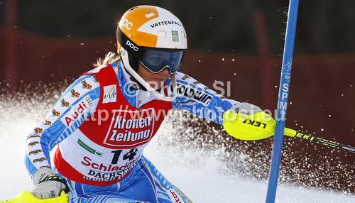 Schladming ,Austria - 17.03.2012 : Frida Hansdotter of Sweden skiing in first run of women slalom race of Audi FIS Alpine skiing World cup finals in Schladming, Austria. Women slalom race of Audi FIS Alpine skiing World cup finals was held in Schladming, Austria, on Saturday, 17th of March 2012. Photo by: Primoz Jeroncic