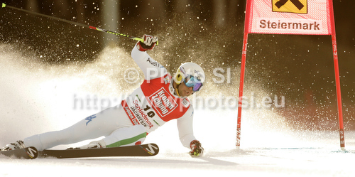 : Davide Simoncelli of Italy skiing in first run of men giant slalom race of Audi FIS Alpine skiing World cup finals in Schladming, Austria. Men giant slalom race of Audi FIS Alpine skiing World cup finals was held in Schladming, Austria, on Saturday, 17th of March 2012.