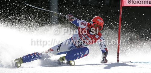 : Cyprien Richard of France skiing in first run of men giant slalom race of Audi FIS Alpine skiing World cup finals in Schladming, Austria. Men giant slalom race of Audi FIS Alpine skiing World cup finals was held in Schladming, Austria, on Saturday, 17th of March 2012.