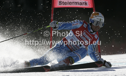 : Matts Olsson of Sweden skiing in first run of men giant slalom race of Audi FIS Alpine skiing World cup finals in Schladming, Austria. Men giant slalom race of Audi FIS Alpine skiing World cup finals was held in Schladming, Austria, on Saturday, 17th of March 2012.