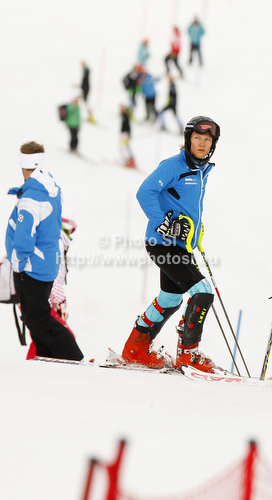 : Santeri Paloniemi of Finland during course inspection before start of first run of men slalom race of Audi FIS Alpine skiing World cup finals in Schladming, Austria. Men slalom race of Audi FIS Alpine skiing World cup finals was held in Schladming, Austria, on Sunday, 18th of March 2012.