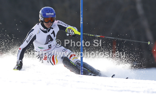 : Felix Neureuther of Germany skiing in first run of men slalom race of Audi FIS Alpine skiing World cup finals in Schladming, Austria. Men slalom race of Audi FIS Alpine skiing World cup finals was held in Schladming, Austria, on Sunday, 18th of March 2012.