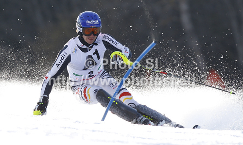 : Felix Neureuther of Germany skiing in first run of men slalom race of Audi FIS Alpine skiing World cup finals in Schladming, Austria. Men slalom race of Audi FIS Alpine skiing World cup finals was held in Schladming, Austria, on Sunday, 18th of March 2012.