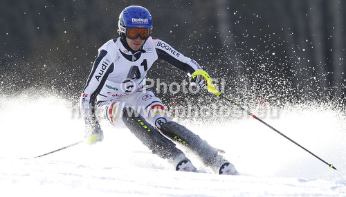 : Felix Neureuther of Germany skiing in first run of men slalom race of Audi FIS Alpine skiing World cup finals in Schladming, Austria. Men slalom race of Audi FIS Alpine skiing World cup finals was held in Schladming, Austria, on Sunday, 18th of March 2012.