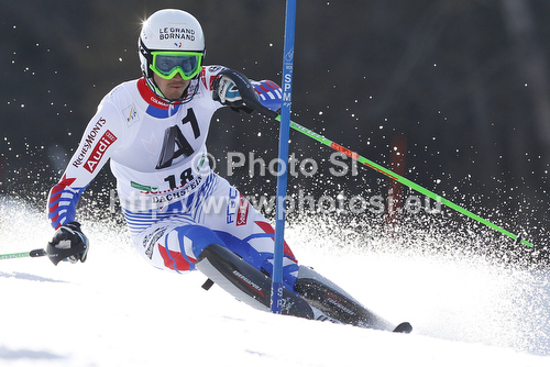 : Steve Missillier of France skiing in first run of men slalom race of Audi FIS Alpine skiing World cup finals in Schladming, Austria. Men slalom race of Audi FIS Alpine skiing World cup finals was held in Schladming, Austria, on Sunday, 18th of March 2012.