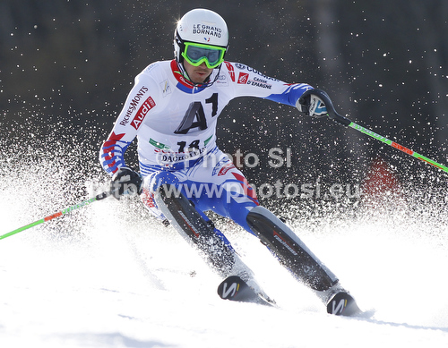 Schladming ,Austria - 18.03.2012 : Steve Missillier of France skiing in first run of men slalom race of Audi FIS Alpine skiing World cup finals in Schladming, Austria. Men slalom race of Audi FIS Alpine skiing World cup finals was held in Schladming, Austria, on Sunday, 18th of March 2012. Photo by: Primoz Jeroncic