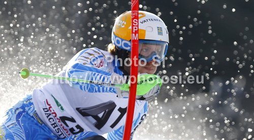Schladming ,Austria - 18.03.2012 : Axel Baeck of Sweden skiing in first run of men slalom race of Audi FIS Alpine skiing World cup finals in Schladming, Austria. Men slalom race of Audi FIS Alpine skiing World cup finals was held in Schladming, Austria, on Sunday, 18th of March 2012. Photo by: Primoz Jeroncic