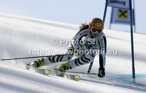 : Lena Duerr of Germany skiing in first run of women giant slalom race of Audi FIS Alpine skiing World cup finals in Schladming, Austria. Women giant slalom race of Audi FIS Alpine skiing World cup finals was held in Schladming, Austria, on Sunday, 18th of March 2012.