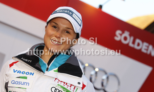 : Merle Soppela of Finland during Audi Media Talk event, which was held on Thursday, 25th of October 2012 in Soelden, Austria. Audi Media Talk is traditional media event before start of Audi FIS Alpine skiing World cup, which will start with women giant slalom race on Saturday, 27th of October, followed by men giant slalom race which will also be held on Rettenbach glacier above Soelden, Austria, on Sunday, 28th of October 2012.