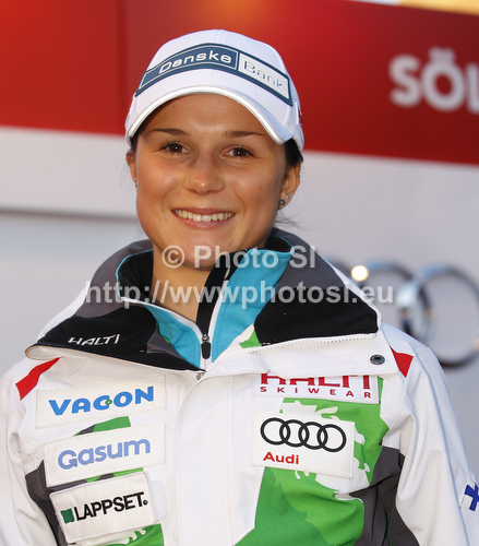 : Merle Soppela of Finland during Audi Media Talk event, which was held on Thursday, 25th of October 2012 in Soelden, Austria. Audi Media Talk is traditional media event before start of Audi FIS Alpine skiing World cup, which will start with women giant slalom race on Saturday, 27th of October, followed by men giant slalom race which will also be held on Rettenbach glacier above Soelden, Austria, on Sunday, 28th of October 2012.