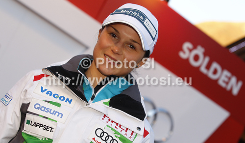 : Merle Soppela of Finland during Audi Media Talk event, which was held on Thursday, 25th of October 2012 in Soelden, Austria. Audi Media Talk is traditional media event before start of Audi FIS Alpine skiing World cup, which will start with women giant slalom race on Saturday, 27th of October, followed by men giant slalom race which will also be held on Rettenbach glacier above Soelden, Austria, on Sunday, 28th of October 2012.