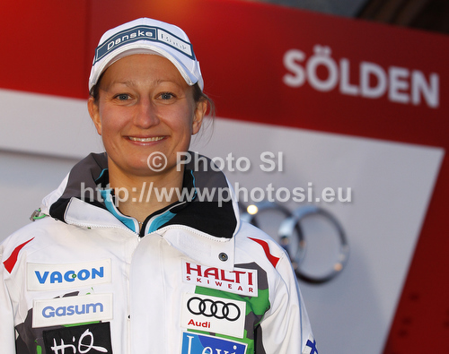 : Tanja Poutiainen of Finland during Audi Media Talk event, which was held on Thursday, 25th of October 2012 in Soelden, Austria. Audi Media Talk is traditional media event before start of Audi FIS Alpine skiing World cup, which will start with women giant slalom race on Saturday, 27th of October, followed by men giant slalom race which will also be held on Rettenbach glacier above Soelden, Austria, on Sunday, 28th of October 2012.