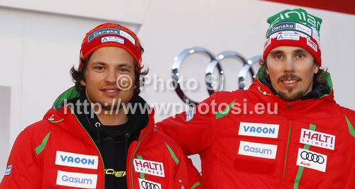 : Marcus Sandell (L) and Andreas Romar (R) of Finland during Audi Media Talk event, which was held on Thursday, 25th of October 2012 in Soelden, Austria. Audi Media Talk is traditional media event before start of Audi FIS Alpine skiing World cup, which will start with women giant slalom race on Saturday, 27th of October, followed by men giant slalom race which will also be held on Rettenbach glacier above Soelden, Austria, on Sunday, 28th of October 2012.