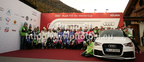 : Athletes of teams sponsored by Audi during Audi Media Talk event, which was held on Thursday, 25th of October 2012 in Soelden, Austria. Audi Media Talk is traditional media event before start of Audi FIS Alpine skiing World cup, which will start with women giant slalom race on Saturday, 27th of October, followed by men giant slalom race which will also be held on Rettenbach glacier above Soelden, Austria, on Sunday, 28th of October 2012.