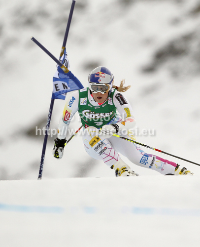 : Lindsey Vonn of USA skiing in first run of women giant slalom race of Audi FIS Alpine skiing World cup 2012-2013 in Soelden, Austria. First women giant slalom race of Audi FIS Alpine skiing World cup was held on Rettenbach glacier above Soelden, Austria, on Saturday, 27th of October 2012.