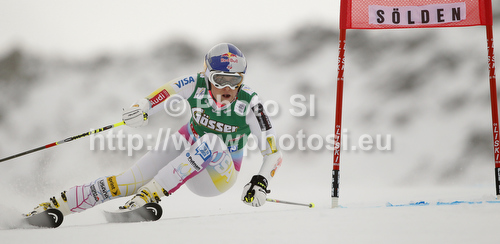 : Lindsey Vonn of USA skiing in first run of women giant slalom race of Audi FIS Alpine skiing World cup 2012-2013 in Soelden, Austria. First women giant slalom race of Audi FIS Alpine skiing World cup was held on Rettenbach glacier above Soelden, Austria, on Saturday, 27th of October 2012.