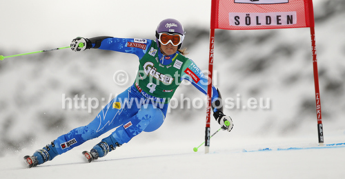 : Tina Maze of Slovenia skiing in first run of women giant slalom race of Audi FIS Alpine skiing World cup 2012-2013 in Soelden, Austria. First women giant slalom race of Audi FIS Alpine skiing World cup was held on Rettenbach glacier above Soelden, Austria, on Saturday, 27th of October 2012.
