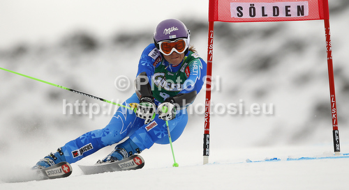 : Tina Maze of Slovenia skiing in first run of women giant slalom race of Audi FIS Alpine skiing World cup 2012-2013 in Soelden, Austria. First women giant slalom race of Audi FIS Alpine skiing World cup was held on Rettenbach glacier above Soelden, Austria, on Saturday, 27th of October 2012.