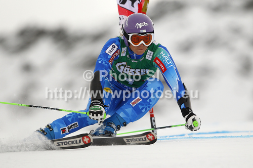 : Tina Maze of Slovenia skiing in first run of women giant slalom race of Audi FIS Alpine skiing World cup 2012-2013 in Soelden, Austria. First women giant slalom race of Audi FIS Alpine skiing World cup was held on Rettenbach glacier above Soelden, Austria, on Saturday, 27th of October 2012.