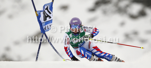 : Tessa Worley of France skiing in first run of women giant slalom race of Audi FIS Alpine skiing World cup 2012-2013 in Soelden, Austria. First women giant slalom race of Audi FIS Alpine skiing World cup was held on Rettenbach glacier above Soelden, Austria, on Saturday, 27th of October 2012.