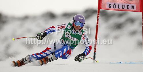 : Tessa Worley of France skiing in first run of women giant slalom race of Audi FIS Alpine skiing World cup 2012-2013 in Soelden, Austria. First women giant slalom race of Audi FIS Alpine skiing World cup was held on Rettenbach glacier above Soelden, Austria, on Saturday, 27th of October 2012.