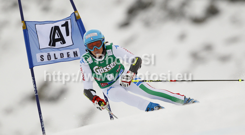 : Federica Brignone of Italy skiing in first run of women giant slalom race of Audi FIS Alpine skiing World cup 2012-2013 in Soelden, Austria. First women giant slalom race of Audi FIS Alpine skiing World cup was held on Rettenbach glacier above Soelden, Austria, on Saturday, 27th of October 2012.