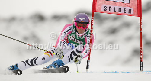 : Maria Hoefl-Riesch of Germany skiing in first run of women giant slalom race of Audi FIS Alpine skiing World cup 2012-2013 in Soelden, Austria. First women giant slalom race of Audi FIS Alpine skiing World cup was held on Rettenbach glacier above Soelden, Austria, on Saturday, 27th of October 2012.