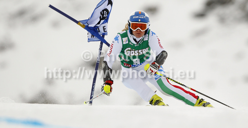 : Denise Karbon of Italy skiing in first run of women giant slalom race of Audi FIS Alpine skiing World cup 2012-2013 in Soelden, Austria. First women giant slalom race of Audi FIS Alpine skiing World cup was held on Rettenbach glacier above Soelden, Austria, on Saturday, 27th of October 2012.