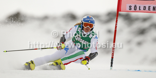 : Denise Karbon of Italy skiing in first run of women giant slalom race of Audi FIS Alpine skiing World cup 2012-2013 in Soelden, Austria. First women giant slalom race of Audi FIS Alpine skiing World cup was held on Rettenbach glacier above Soelden, Austria, on Saturday, 27th of October 2012.