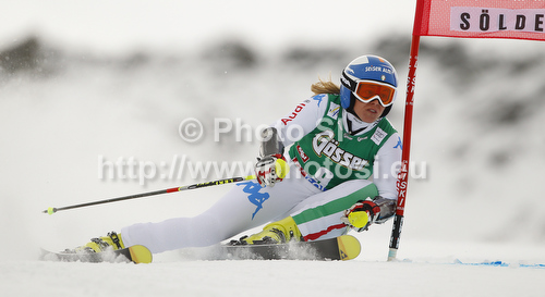 : Denise Karbon of Italy skiing in first run of women giant slalom race of Audi FIS Alpine skiing World cup 2012-2013 in Soelden, Austria. First women giant slalom race of Audi FIS Alpine skiing World cup was held on Rettenbach glacier above Soelden, Austria, on Saturday, 27th of October 2012.