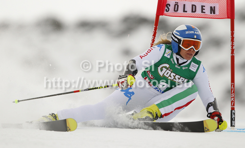 : Denise Karbon of Italy skiing in first run of women giant slalom race of Audi FIS Alpine skiing World cup 2012-2013 in Soelden, Austria. First women giant slalom race of Audi FIS Alpine skiing World cup was held on Rettenbach glacier above Soelden, Austria, on Saturday, 27th of October 2012.