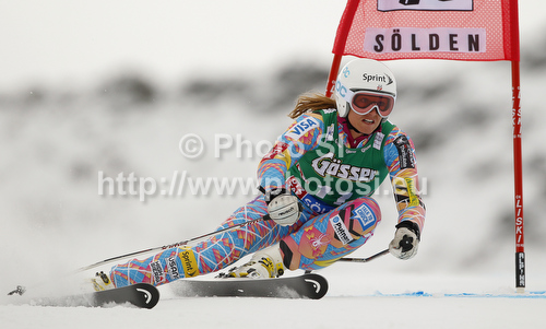 : Julia Mancuso of USA skiing in first run of women giant slalom race of Audi FIS Alpine skiing World cup 2012-2013 in Soelden, Austria. First women giant slalom race of Audi FIS Alpine skiing World cup was held on Rettenbach glacier above Soelden, Austria, on Saturday, 27th of October 2012.