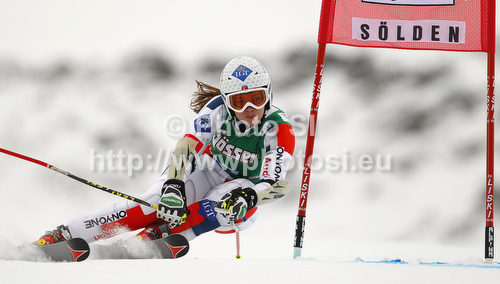 : Tina Weirather of Liechtenstein skiing in first run of women giant slalom race of Audi FIS Alpine skiing World cup 2012-2013 in Soelden, Austria. First women giant slalom race of Audi FIS Alpine skiing World cup was held on Rettenbach glacier above Soelden, Austria, on Saturday, 27th of October 2012.