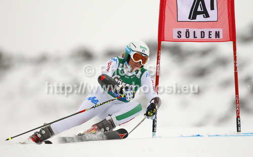 : Lisa Magdalena Agerer of Italy skiing in first run of women giant slalom race of Audi FIS Alpine skiing World cup 2012-2013 in Soelden, Austria. First women giant slalom race of Audi FIS Alpine skiing World cup was held on Rettenbach glacier above Soelden, Austria, on Saturday, 27th of October 2012.